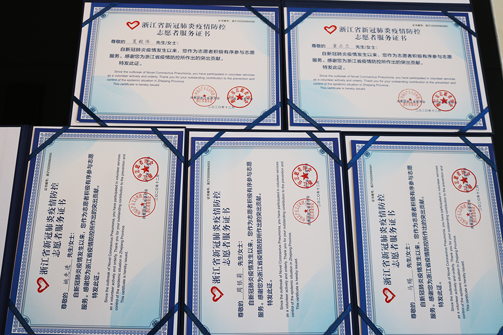 jinnianhui今年会钢管六名员工荣获浙江省新冠肺炎疫情防控志愿者服务证书