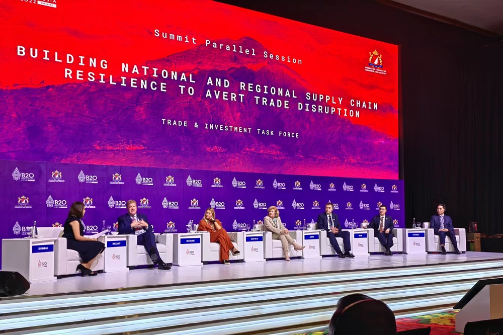 在13时至14时30分举行的小组讨论环节,围绕“供应链中断突显全球价值链的脆弱性以及供应链选择多样化的必要性”话题进行了问答。当被主持人问及“如何建立更加有韧性的全球供应链”时,项光达主席回答道:国际贸易建立起来不容易,应该要继续延续而不能使之断裂,几十年来建立起来的稳定供应链系统,如果在短时间内出现一些不确定因素,对企业来说是一个重大挑战;因为全球的资源配置是最有效的,各个国家之间要在互信的前提下,建立长期的战略资源合作。